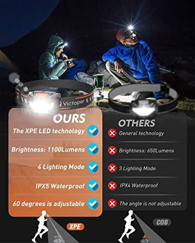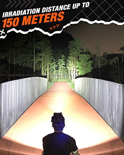 Super Bright Running Head Torch: With 4 Lighting Modes, easy one-button switching of High/ /Low brightness white light, Red Light/Red Light SOS strobe. Super brightness offers up to 150 meters of visibility, giving you much more peripheral vision.