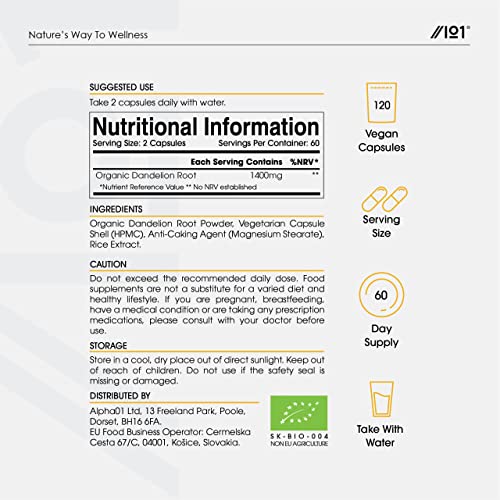 ✔ ORGANIC DANDELION ROOT: A member of the daisy family, the Dandelion is one of the most unmistakeable plants due to its bright yellow flower heads. However, it is the root of the plant that has the longest history of use. Each serving of this high strength product contains 1,400mg of pure organic dandelion root.