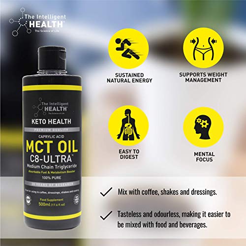 MCT Oil C8-Ultra 500ml – from Coconut Oil with Caprylic Acid | Helpful for Keto Diet, Ketones Supplement & More | Paleo…