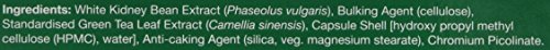 White Kidney Bean Extract (Phaseolus vulgaris), Bulking Agent (cellulose), Standardised Green Tea Leaf Extract (Camellia sinensis), Capsule Shell [hydroxy propyl methyl cellulose (HPMC), water], Anti-caking Agent (silica, veg. magnesium stearate), Chromium Picolinate.