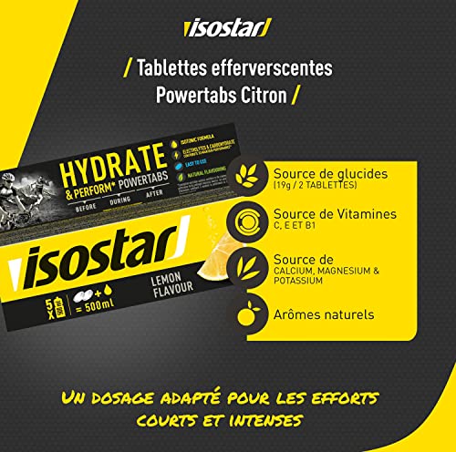 Powertabs effervescent tablets are specially suited to short and intense exercises, thanks to their specific balance of carbohydrates and minerals. Developed from an isotonic formula, this drink provides hydration and optimal gastric drainage. It is also rich in anti-oxidant vitamins C and E, essential for fighting against free radicals produced by physical exercise and in vitamins B1, B2, B6 and PP, necessary for use of carbohydrates by the cells. At the same time it is low in calories, containing only 87kcal per portion. It is also rich in calcium and magnesium.