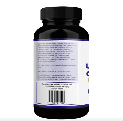 This powerful ultimate Fat Burner fully aligned with those on a Keto Diet these natural powerful weight loss pills are suitable for anyone seeking weight loss or weight management. For best results take three in the morning or before a workout. They are also suitable to use spaced out before meals to help combat cravings by suppressing hunger and boost metabolism . This powerful fat burner is suitable for people on any diet or workout plan seeking to loose weight. They will also work as a pre workout if you need extra energy for your gym session or run. Recyclable packaging is an important part of a sustainable future for everyone so we have ensured our products are PET 1 fully recyclable. Our Vegan Fat Burner is with veggie capsules and no gelatine. Caffeine, Guarana, Apple Cider Vinegar, Kelp Leaf, Cayenne Fruit Extract, Ginseg, Zinc, copper gluconate, B6, Chromium