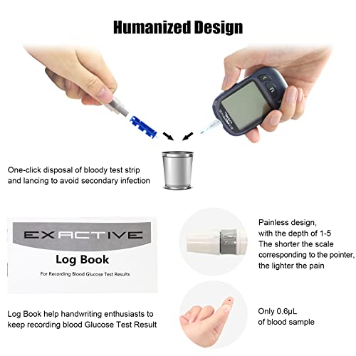 ✅BLOOD GLUCOSE TESTING KIT: EXAVTIVE VITAL blood sugar kit meets all your needs for measuring blood sugar. The blood sugar monitor is fully functional and can be used for a long time. The test strips and lancets can be used for 50 times. Please look for EXACTIVE VITAL test strips when repurchasing. The log book can satisfy handwriting enthusiasts record requirements.