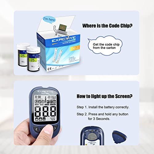 ✅EXACTIVE VITAL BLOOD GLUCOSE METER: The blood glucose meter can only be used in conjunction with EXACTIVE VITAL blood glucose test strips (with code), others are not applicable. If you find that the EXACTIVE test strips you purchased do not match, please feel free to contact us.