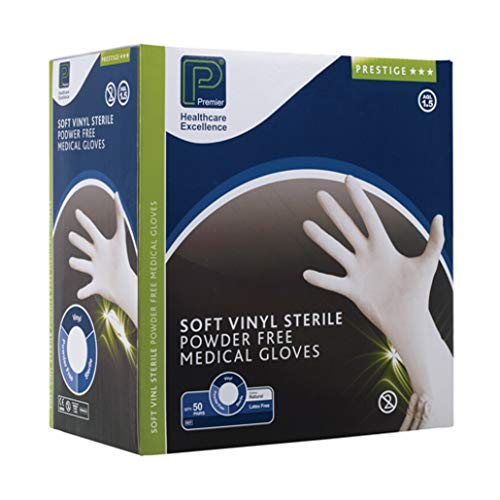 Premier Prestige Soft Vinyl Exam Gloves, Sterile, Natural, Latex Free, Large (Pack of 50)