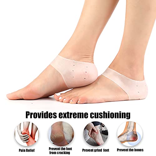 2.Shock Absorbing Design: Gel Heel protectors are Shock absorbing anti-skid, Gel Heel Sleeves can protect your feet well and reduce friction when you are walking or running. 3. Heel cushion pads are great for dry cracked feet, heel pain, achilles tendinitis for women and men.