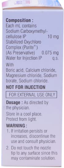 Made in India. Consists of Carboxymethylcellulose 1%w/v. Helps with moist bright eyes.
