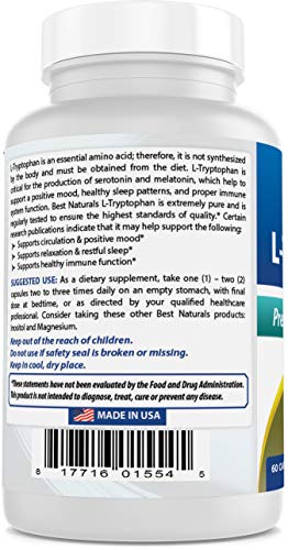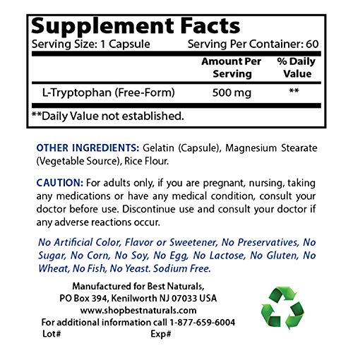 Best Naturals L-Tryptophan 500 mg 60 Capsules (60 Count (Pack of 1))