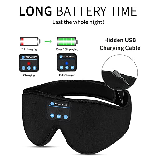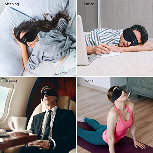 【 Block Out Light Perfectly】Sleep headphones bluetooth sleep mask has a full coverage and uniquely designed of the nose area, effectively blocking light from entering, prevent light leakage. Block light to make your sleep better, allows you to listen to music without wearing additional headphones,which make you fall asleep faster. Get the benefits of total blackout, whether at home, in a hotel or on the plane