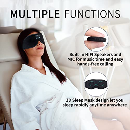 Sleep Mask Sleep Headphones, 3D Eye Mask Wireless with Timer, Washable Blocking Light Music Sleeping Mask for Side…