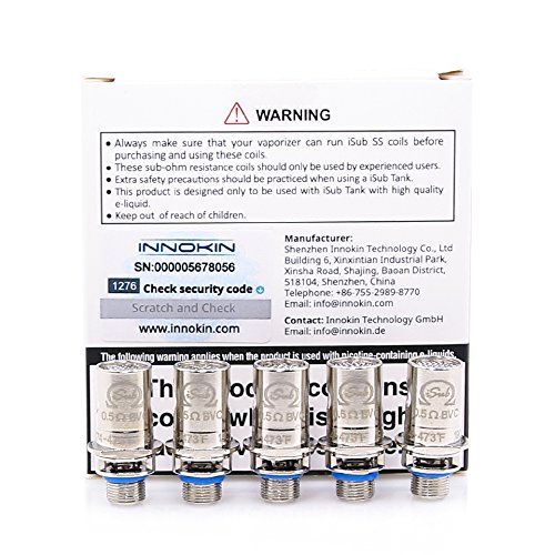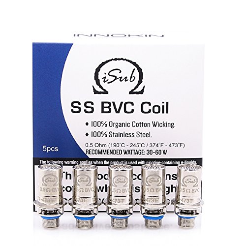 Innokin iSub Replacement Coils SS BVC 0.5ohm,Recommended Wattage:30w-60w