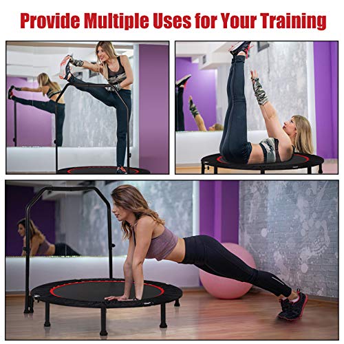 【Easy-folding Design】- This mini trampoline allows you to fold it twice into a portable size, which is easy to transport and space-saving storage. Design for exercise in small places like home, office, gym, living room, backyard etc.