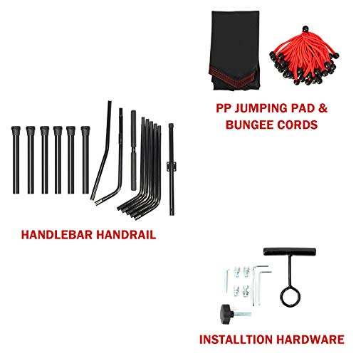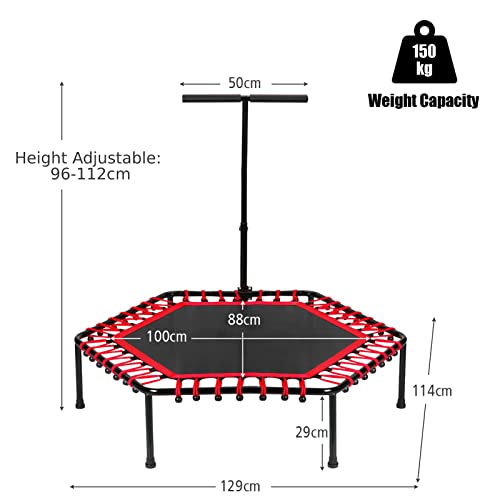 Folding & Adjusting Handle: Our Exercise trampoline has 3-level height adjustable handles, which can be adjusted every 8cm between 96-112cm to meet the needs of different people. Not only that, the handle also has a foldable function, which is convenient for storage and saves space.
