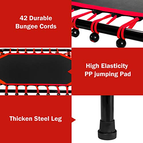 Premium Materials: The breathable PP jump pad has good elasticity and noise reduction design, which can provide a perfect jump experience. In addition, the attached 42 high elastic bungee cords provide a strong buffer for the trampoline and provide a longer life.