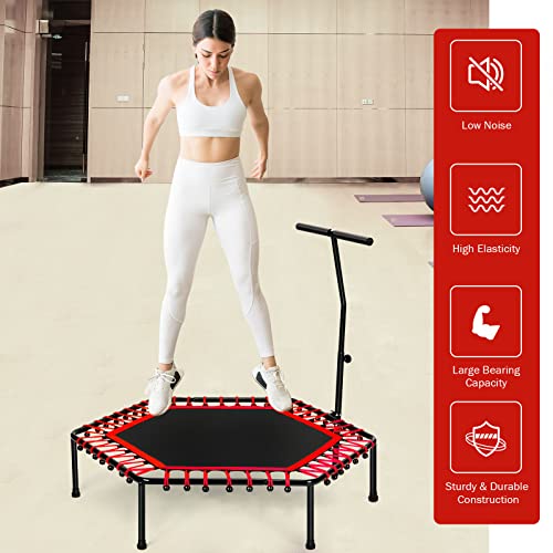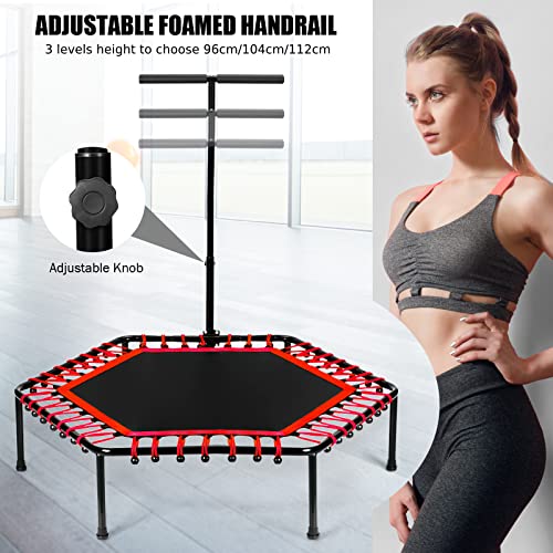 Maxmass 50-inch Fitness Rebounder, Exercise Trampoline with Folding and Adjustable Foam Handle, Mini Trampoline for Kids…