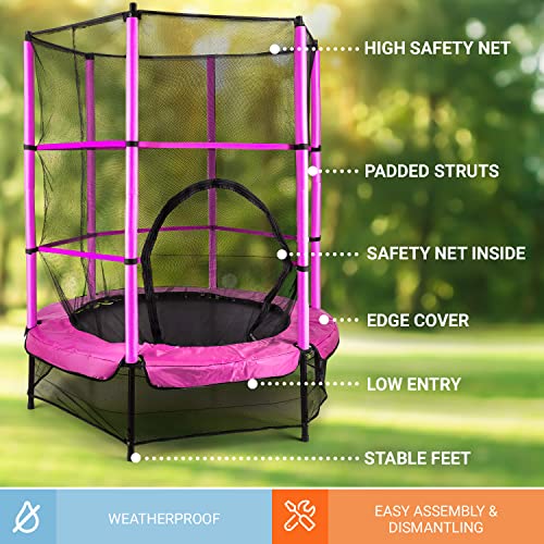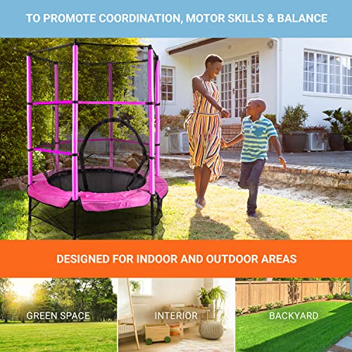 NO SLIPS, JUST JUMP: For stable, wobble-free jumping, this kids trampoline has an anti-slip grip that keeps the trampoline on the ground while kids are in the air. A safety net with padded poles ensures young ones never jump out and hurt themselves.