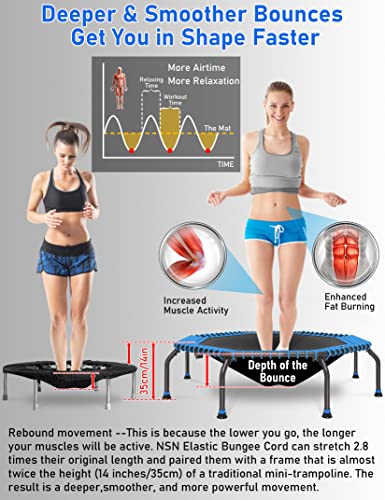 NSN 50″ Fitness Trampoline Max. Load 250lbs Silent Easy Installation Indoor Exercise Foldable Trampoline for Adults