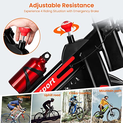✅【Infinite Resistance & Emergency Brake】With a simple twist, you can increase or decrease resistance so your workout can remain challenging and effective throughout your fitness journey or terminate the riding by pressing down the knob. Different resistance levels just like experience simulated riding modes:acceleration,uphill,cross-country, climbing. It is fit for all fitness level depending on your strength, ability and comfort no matter you are a beginner, advanced user, athletes or etc.