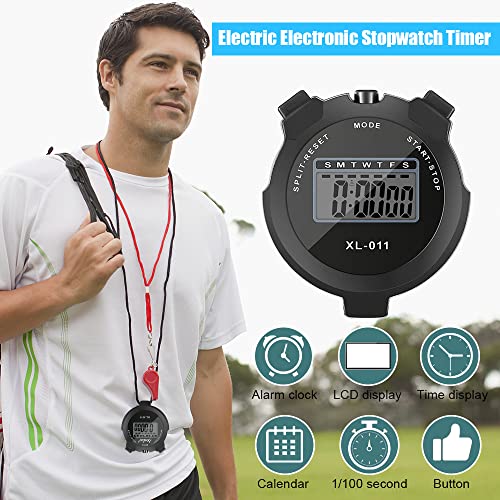 You will receive 3 pieces of stop watches timer with 3 pieces of eco-friendly metal whistle, multifunctional shockproof anti-skid chronograph sports timer for sports fitness swimming running training school gym coach referee teacher kids.
