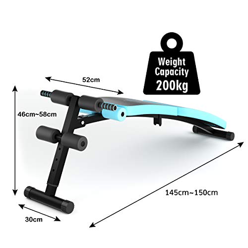【Heavy Duty Structure】 Constructed by heavy duty iron tube frame, the sit up bench has good stability and durability. The surface of powder coating has a good appearance and can be waterproof and corrosion-resistant. It has the bearing capacity of 200 kg. Other than that, not only do the rubber pads increase the stability of our slant bench, but also prevent wearing the floor.