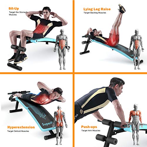 【Integrated-Style Exercise】Our sit up bench can be used for multi-function training, such as sit ups, lying leg raises and hyperextensions. Just one bench can easily achieve abdominal, back, arm and leg muscles training at the same time. It is quite ideal for you to use in home or gym with its versatile functions.