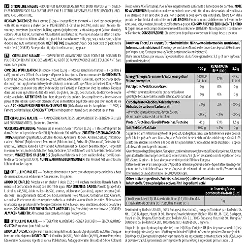 Per serving (3.2 g powder): 3000 mg Citrulline-malate (1:1)