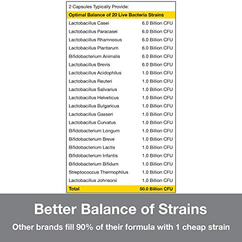 HIGH-STRENGTH FORMULA: At 50 Billion CFUs per dose, this probiotic supplement has a higher concentration of beneficial bacteria than many alternatives, offering a convenient way to add good bacteria into your daily nutrition