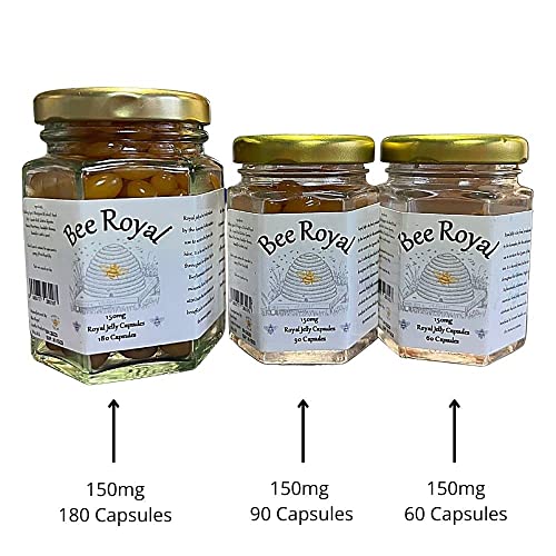 Bee Royal – 150mg Fresh Royal Jelly Capsules – 90 Capsules of 100% Fresh Queen’s Jelly NOT Freeze Dried Extract…