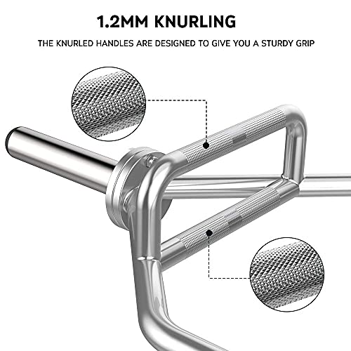 【2 DIFFERENT GRIP POSITIONS w/ KNURLED HANDLES】Regular and raised handles are built with 1.2mm knurling to give you more flexibility with squats, deadlifts, shrugs and the farmer’s walk are can help you work all of the major muscle groups to strengthen your core, improve your functional fitness and develop your total-body strength.