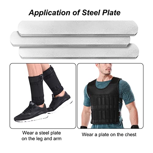 SIZE: The size of the leg weight steel plate is 15 x 2.5 x 0.4 cm, and each piece weighs about 200g. The product includes 12 training vest steel plates, you can choose the appropriate number according to your needs, and load them into leg guards and weighted vests for use.