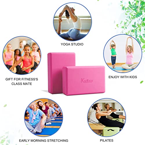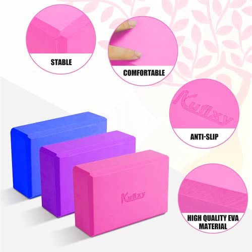 Slip Resistant and No Sticking in Back: Kufixy non-slip yoga blocks and strap set provides excellent grip for advanced yoga poses in a safer and more beneficial way, while its rounded corners and beveled edges ensure no sticking in your back or legs.